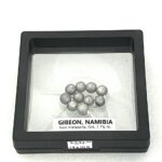 The meteorite iron (93% Fe, 7%Ni) is cut into cubes, shaped into spheres, and polished up to a smooth, mirror-like surface. After that, it is etched with acid that reveals the crystalline structure classified as a fine octahedrite.
